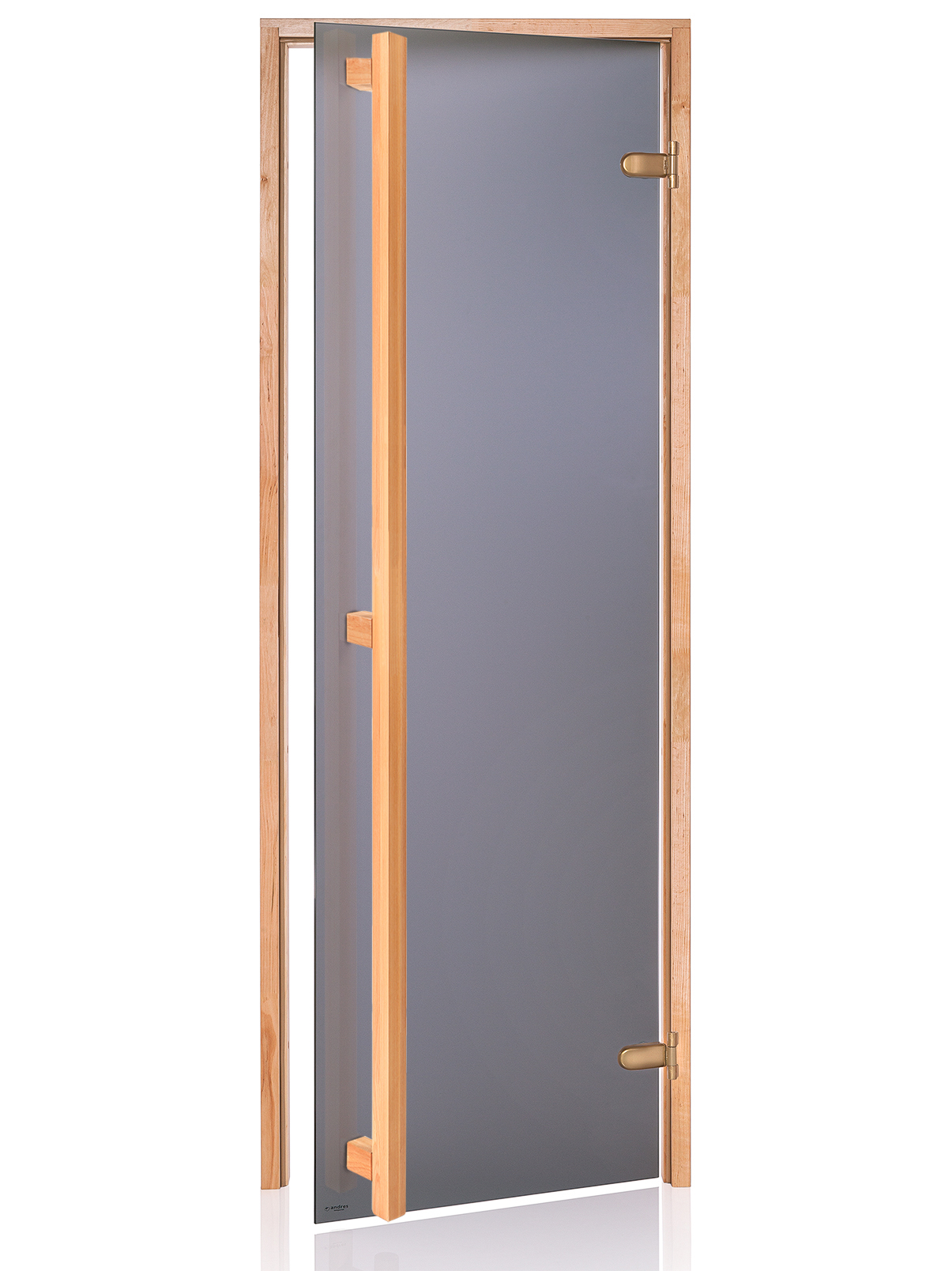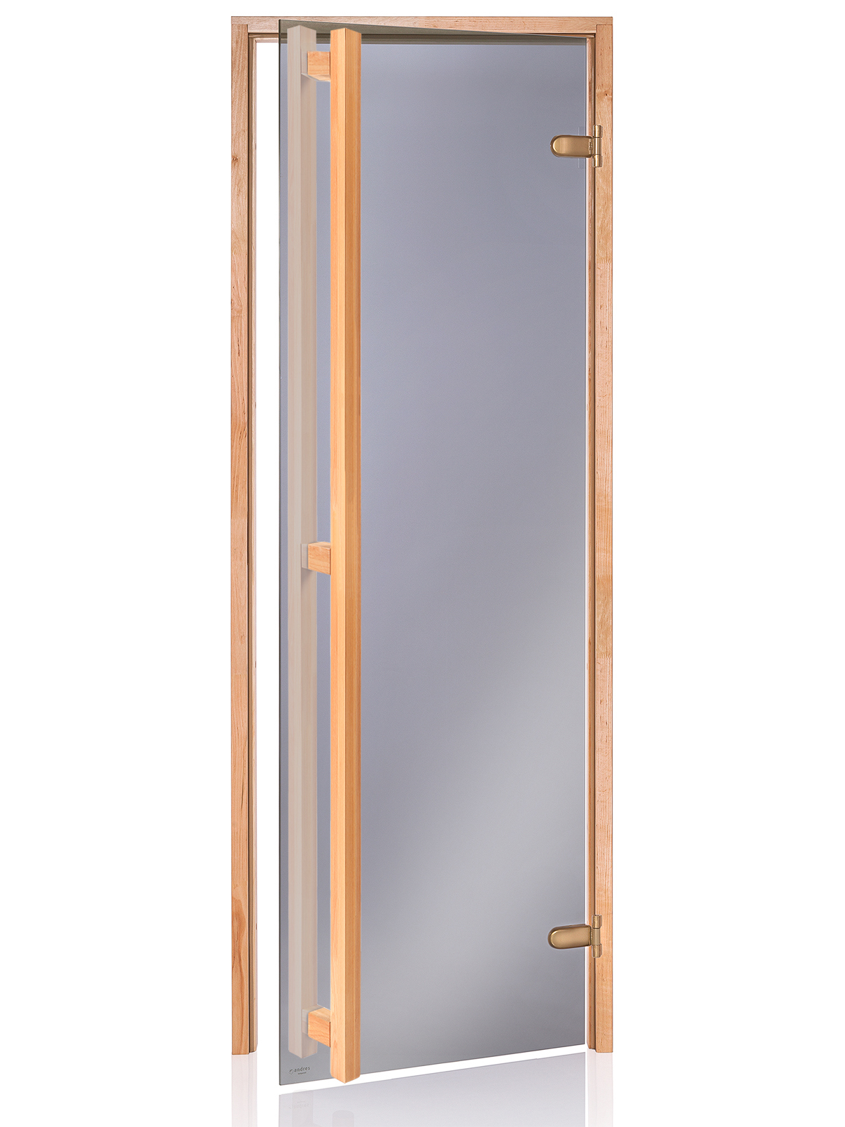 Die Tür besteht aus 8 mm dickem gehärtetem Glas und 92 mm tiefen keilgezinkten Rahmen. Die Tür hat eine universelle Händigkeit und wird komplett ausgeliefert.